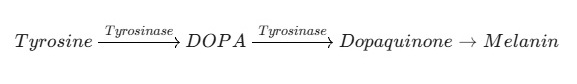 Melanin được hình thành từ axit amin Tyrosine dưới tác tác động của enzyme Tyrosinase. Quá trình này diễn ra theo sơ đồ tóm tắt sau: