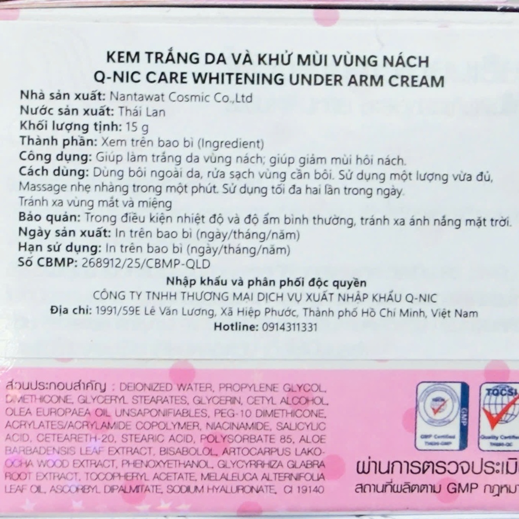 KEM TRẮNG DA VÀ KHỬ MÙI VÙNG NÁCH Q-NIC CARE WHITENING UNDER ARM CREAM